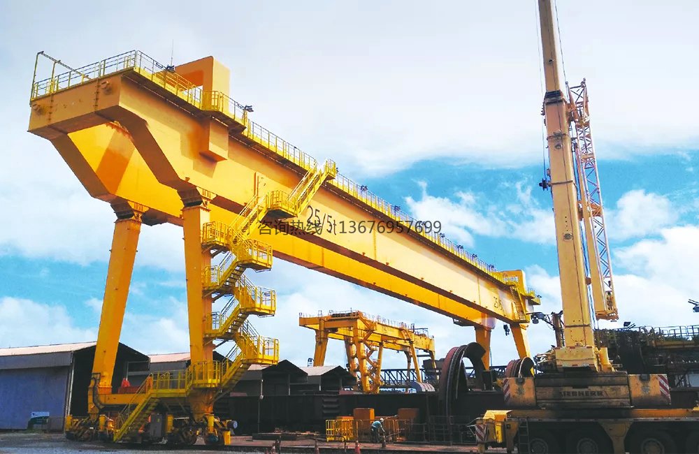 1、龙门吊主梁多数是分段运送到现场的。在现场进行对接组装。组装焊接后,查看几许尺度。发现跨中拱度和悬臂起翘有不同,需当即调整跨中拱度和悬臂起翘的数值。